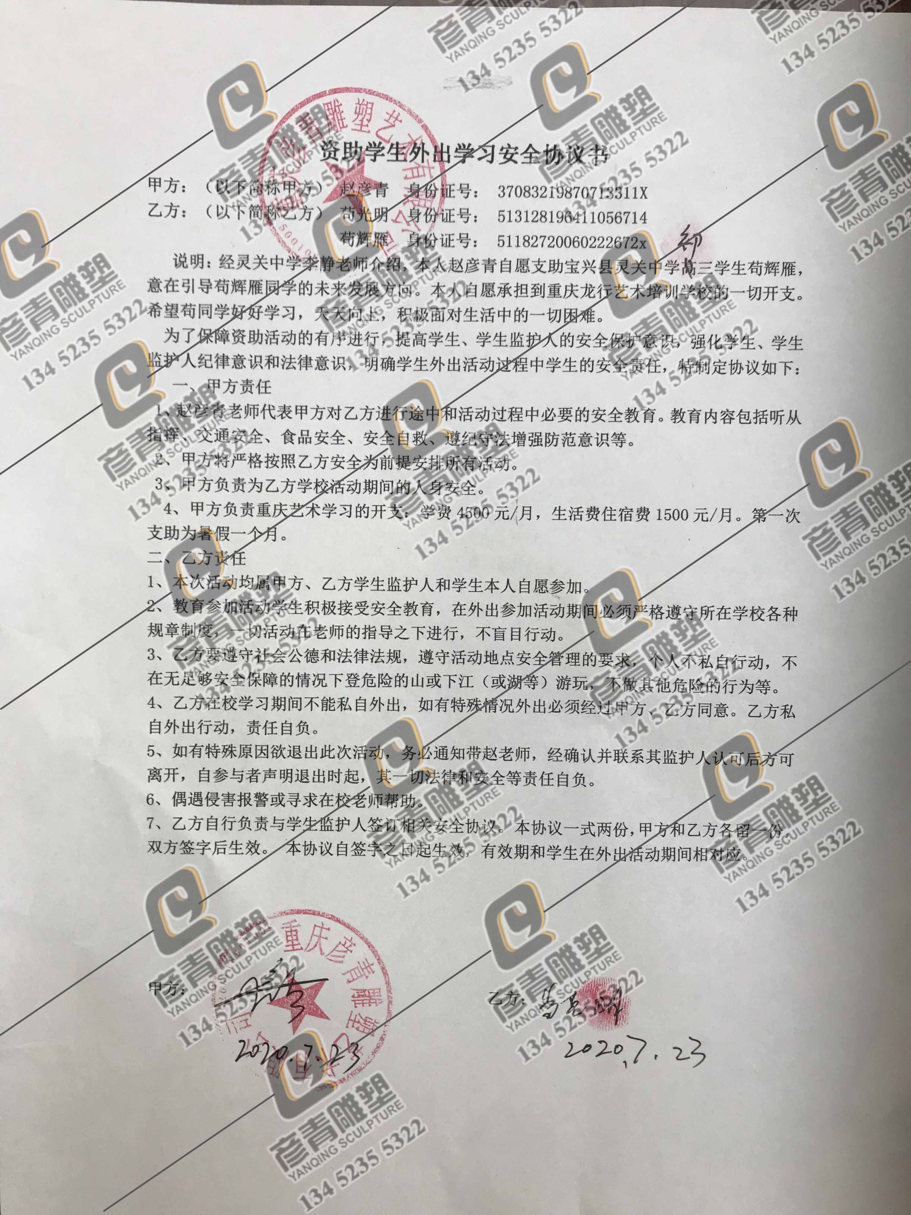 我司赵彦青总经理资助灵关中学贫困学生苟辉雁